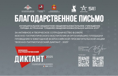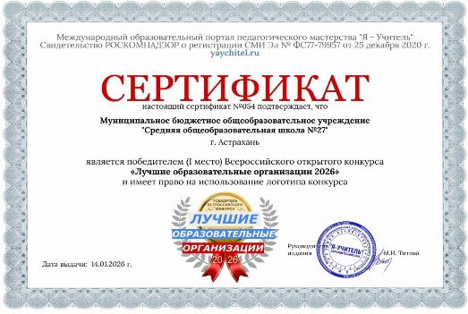 414032 г. Астрахань, ул. Туркменская д.30, тел.приемная/факс: 8(8512) 55-20-82. е-mail: sosh_27.73@mail.ru